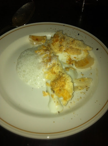 Last course: Almond panna cotta, meringue, milk foam, sichuan pepper, lychee