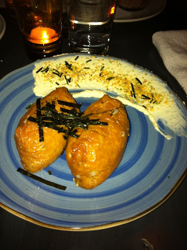 Salted cod, rice, tofu pocket (Inari), nori, kewpie (Japanese Mayonese)