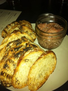 On the left: Toasted baguette, pork rillettes