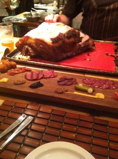 Sitting at the Chef’s table, we see chef Misha Nesterenko preparing the pork roast for the night.
