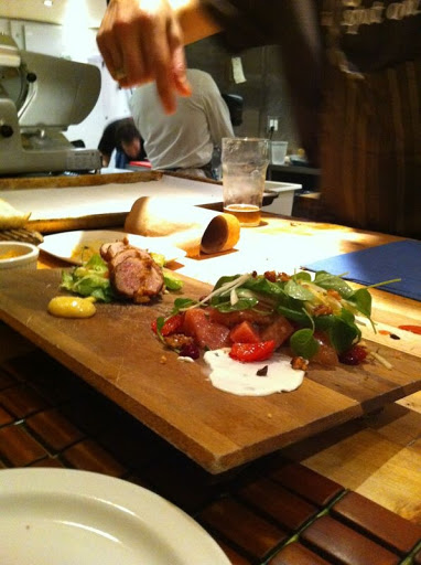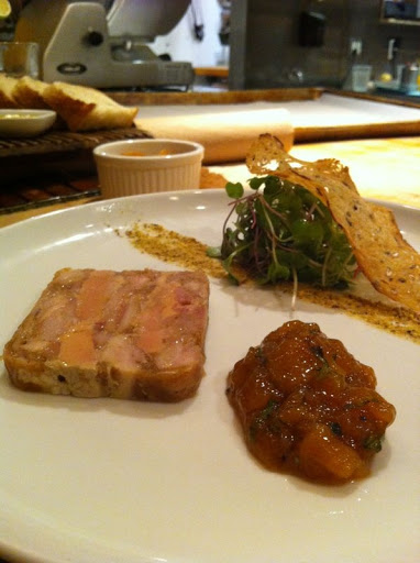 My favourite: Rabbit and Foie Gras Terrine with peach chutney, herb salad and a shaved crostini.