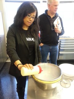 Michelle making ice cream pearls with liquid nitrogen