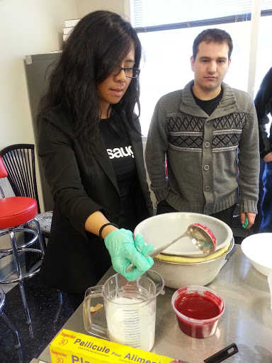 Michelle making the raspberry and coconut shells with liquid nitrogen