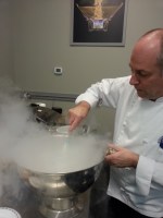 John Placko making ice cream with liquid nitrogen