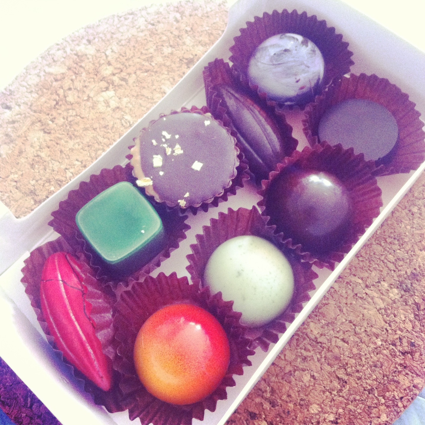 Mother’s Day Chocolates 2013 1st row from left to right: lychee, pistachio, peanut butter, coffee, lavender 2nd row from left to right: passion fruit, green tea, peach, mint Share this: Click to share on X (Opens in new window) X Click to share on Facebook (Opens in new window) Facebook Like Loading... Related