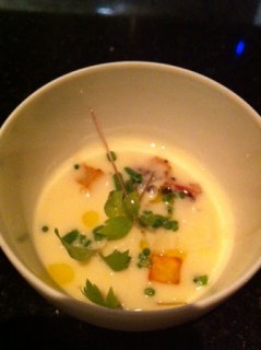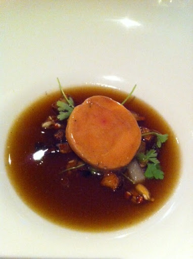 Sunchoke Consomme (Sunflower Granola, Foie Gras, Black Pepper)