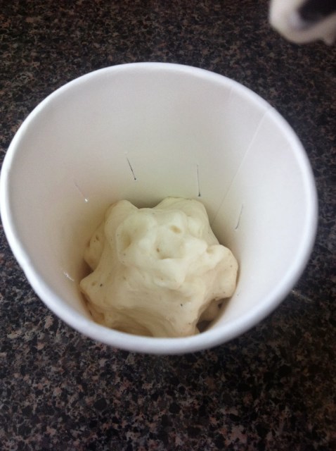 Dispense batter into the paper cup.