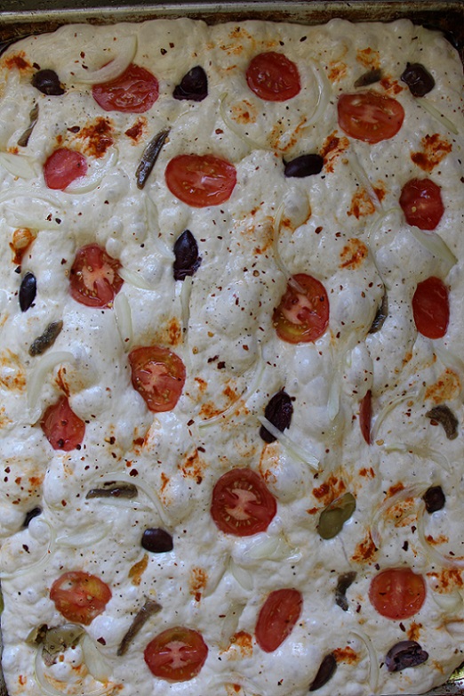 Focaccia is one of my favourite breads to make. It has a super high hydration (93% in this case), but because it’s baked in a pan it doesn’t require any bread shaping skills. The possibilities for toppings are limitless, and it’s pretty good plain as well. Personally, I like baking focaccia in a lasagna pan, because it’s smaller than a sheet tray and has higher sides so the resulting loaf is dramatically thick. Eat it on its own, or even slice it lengthwise for sandwiches. You can’t go wrong!