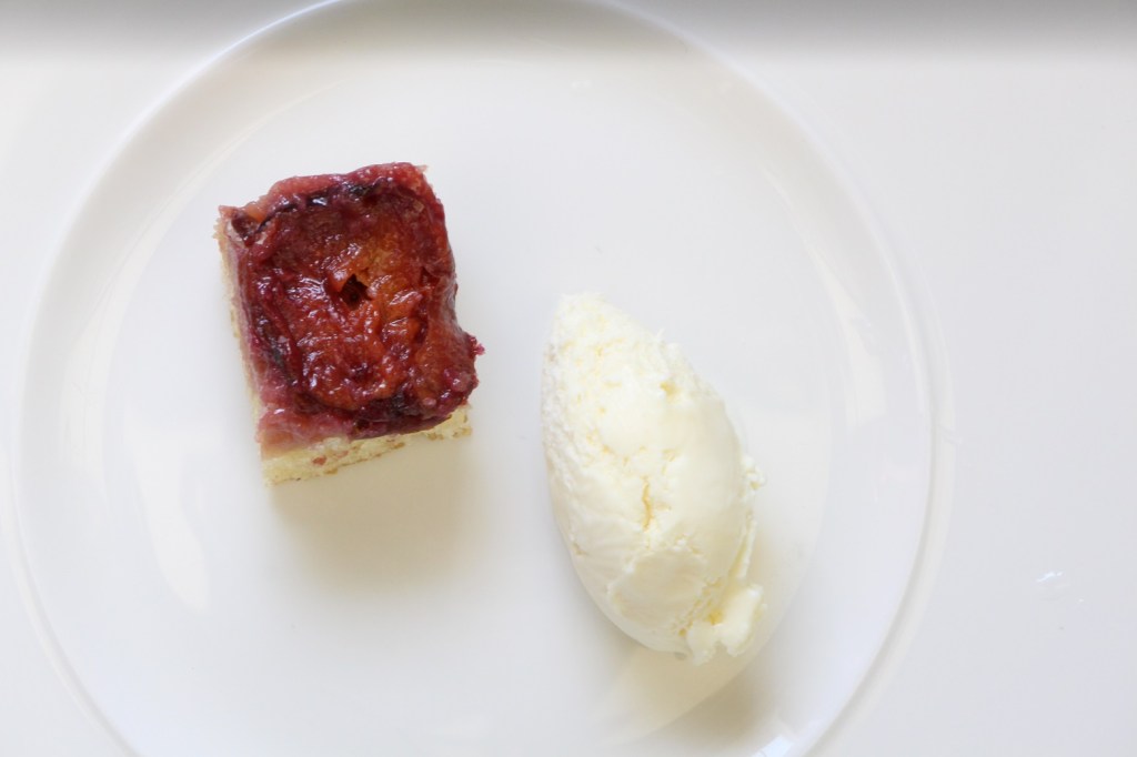 Dessert: We have been testing out Megan’s Oma’s upside down cake recipe this week – at school with the kids and at home. We made it a total of 6 times before posting this! A shout out to Farmer Karin for providing us with the recipes, as well as bags and bags of plums. (Don’t worry, no plums or cakes were thrown out in this process, I have lots of hungry teenagers and co-workers.) Since we still had some pieces of cake at home, this was a half-ass dessert. I just tossed on a sort-of quenelle of ice cream and took a picture. Sorry! I will do better in my next dinner.