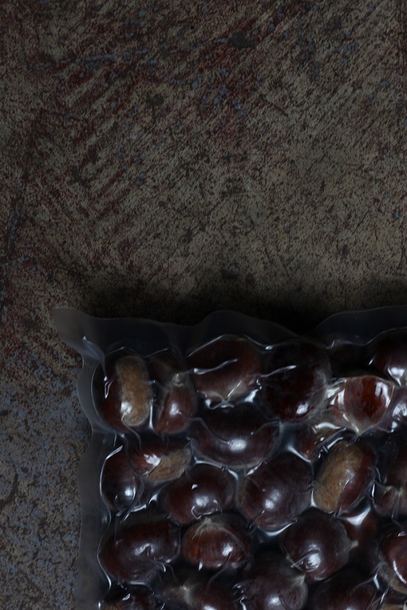 At the end of this past growing season, we were blessed with (among other things) a harvest of garlic, apples and chestnuts from Katsumi Farms, (Megan’s parents homestead). With minimal fridge space and an eagerness to learn more about preserving and fermenting stuff, Megan and I decided to try turn them black before they turned bad. Let’s start! To make black chestnuts, black garlic and black apples, we vacuum sealed them in bags and placed them in a dehydrator at 60°C/140°F for 4 weeks, 6 weeks and 8 weeks, respectively.