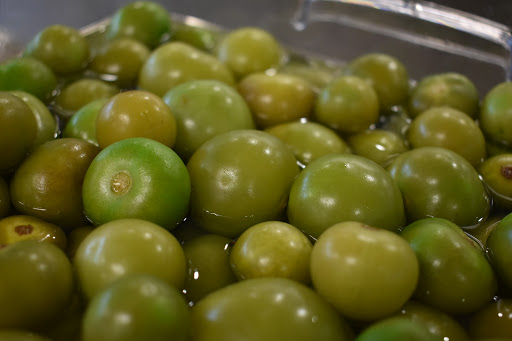 1. In a sauce pot, combine all ingredients, except tomatillos, and bring to a boil.